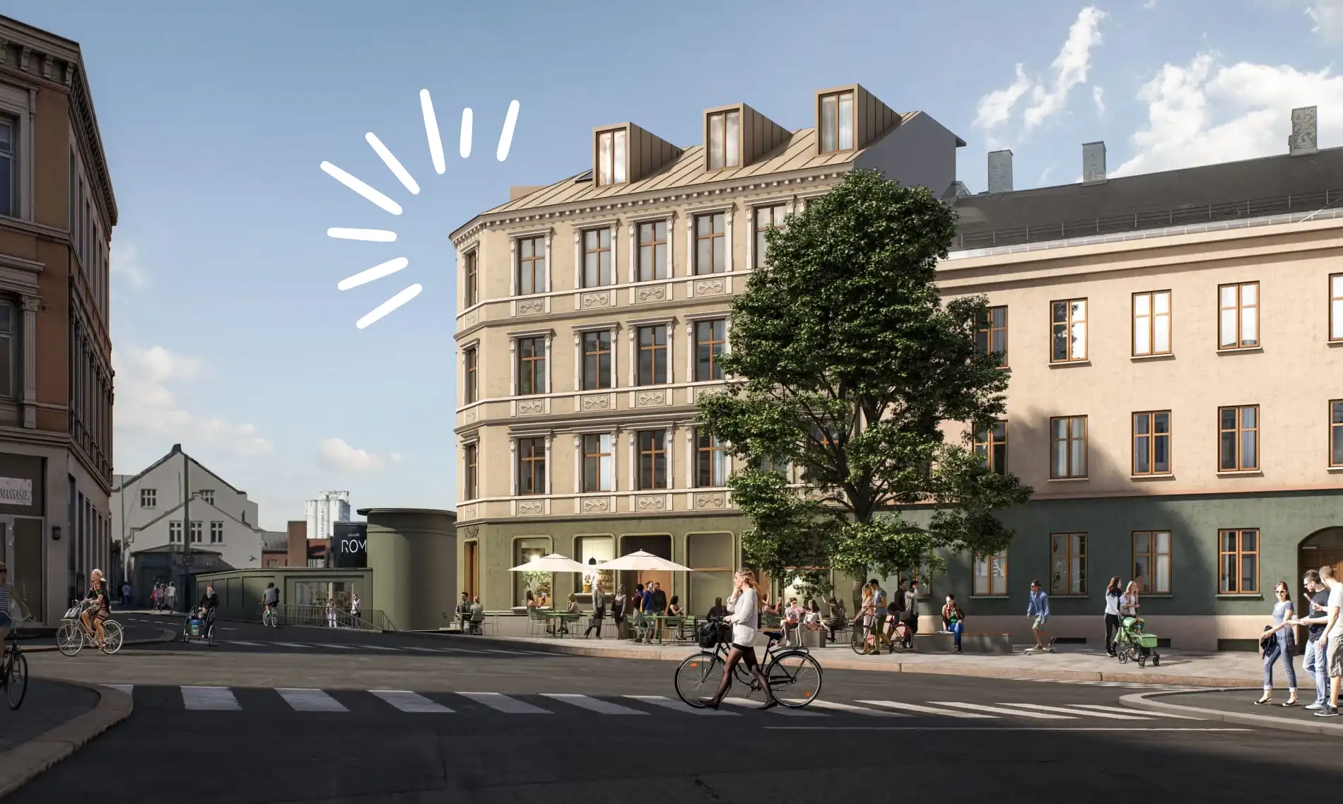 Sykkelen parkerer du trygt i bakgården, og en digital plattform lar deg booke fasiliteter, holde kontakt med naboene, organisere aktiviteter og følge med på det som rører seg i bygget.