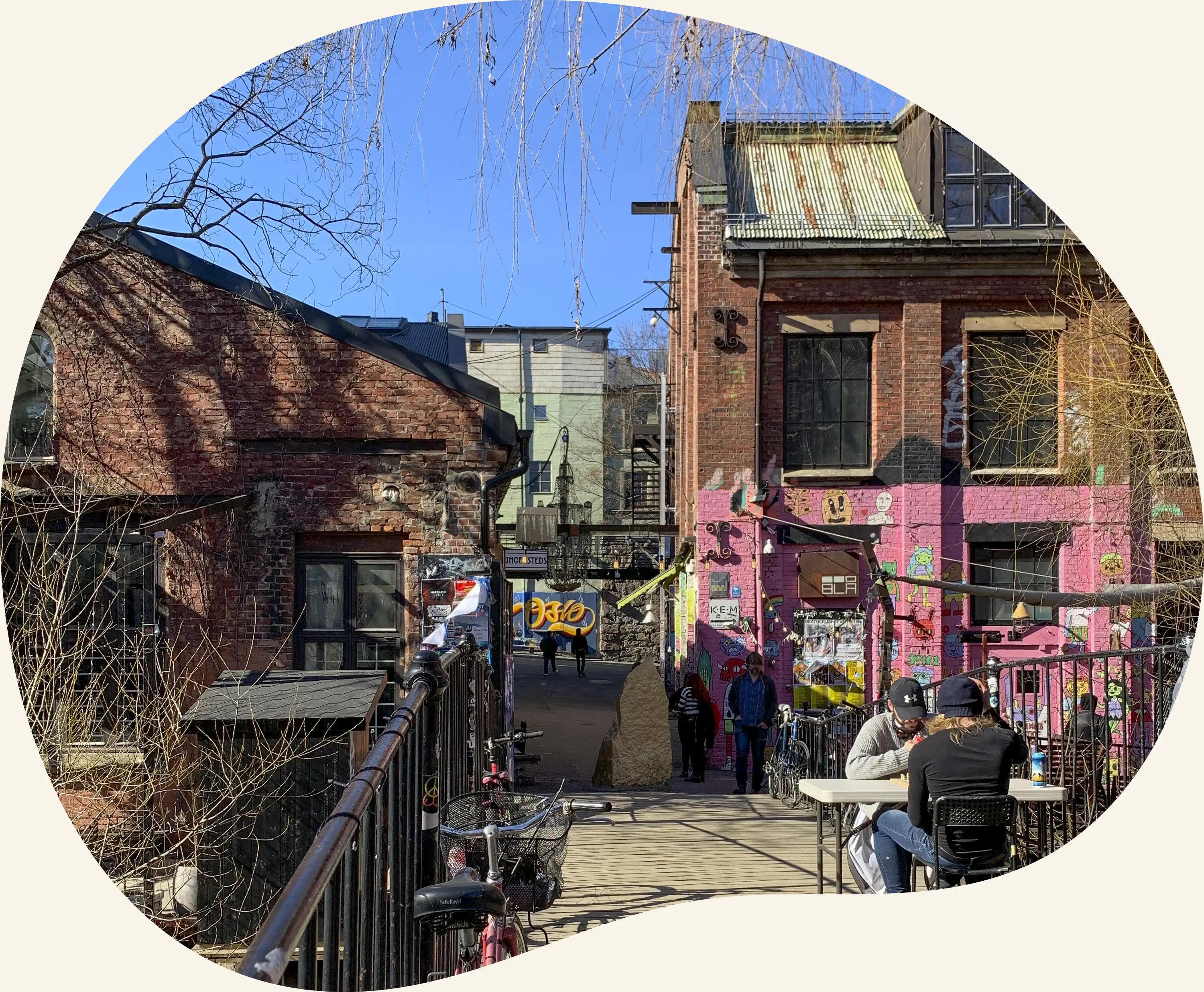 På andre siden av elva ligger Grünerløkka: kaffebarer, vintagebutikker, platebarer og grønnsakshandlere side om side, med Thorvald Meyers gate og Markveien som naturlige akser for alt fra hverdagsinnkjøp til nye favoritter.